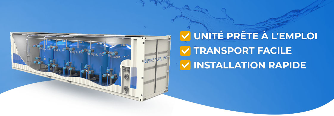 Le système de filtration de milieu containerisé est l’une des meilleures méthodes de purifications des eaux de surface sur le marché. Avec des taux allant jusqu’à 520 GPM, l’eau potable peut être produite pour des sites de constructions, des camps militaires temporaires et pour des utilisations industrielles avec facilité. Nous avons pris tous les bénéfices du système de filtration de milieu industriel et l’avons rendu transportable, pour qu’ils puissent être déplacer vers un nouveau lieu lorsque cela est nécessaire ou qu’ils dieviennent une installation permanent. Tous nos systèmes conteneurisés sont conçus à partir de zéro avec vos besoins et vos spécifications, ainsi vous pouvez être sure de recevoir un système de traitement unique de haute qualité.